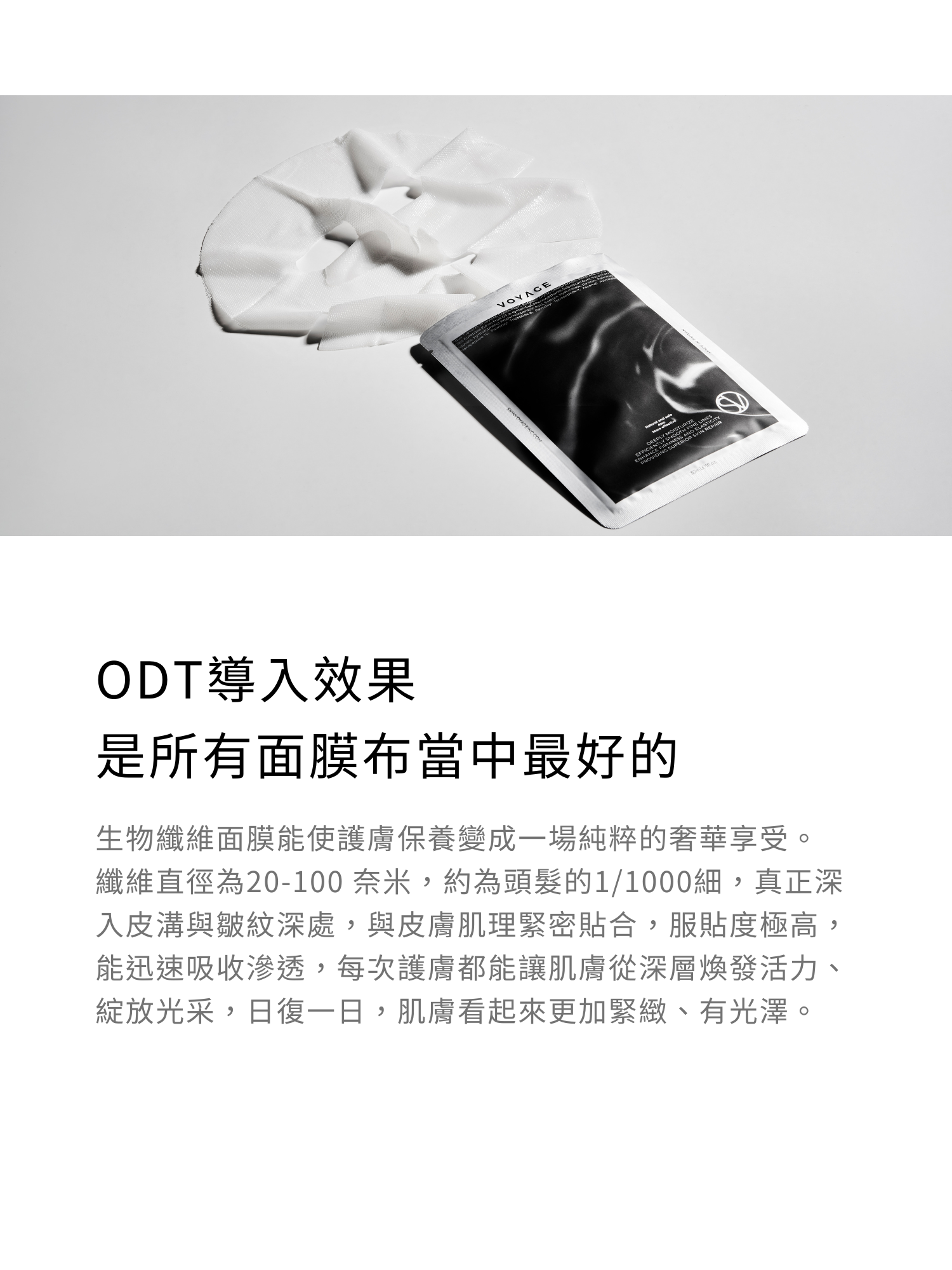 ODT導入效果為所有面膜布當中最好,能真正深入皮溝與皺紋深處,可顯著提升肌膚防護、潤澤飽滿、提拉撫紋,日復一日,肌膚看起來更加緊緻、有光澤。